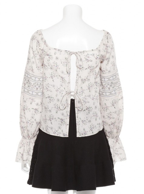 ぐっと広く開いたネックや、袖口に向かってふわりと仕立てたスリーブも女の子らしさを際立てます。
