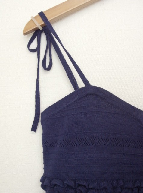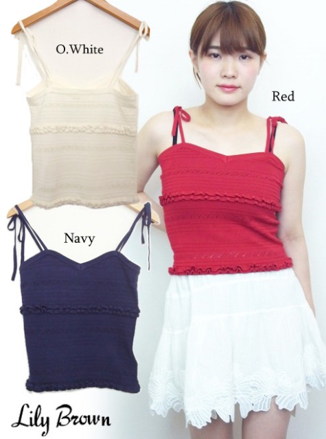 身頃を飾る2段のフリルが、愛らしいポイントになったニットキャミソール。