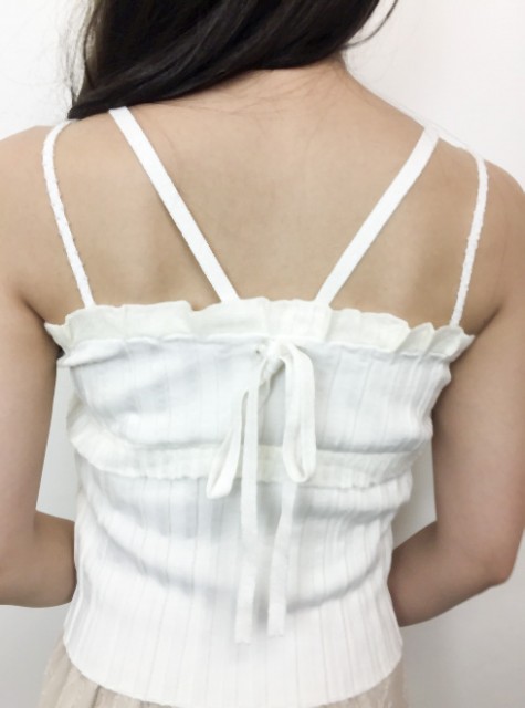 胸元とバスト下のフリルが愛らしいニットキャミソールをつくりました。