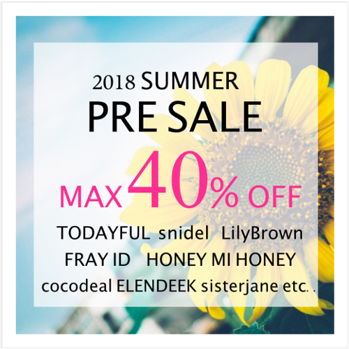 >MAX40%OFF!!夏の新作アイテムもとってもお得に手に入るチャンス!!