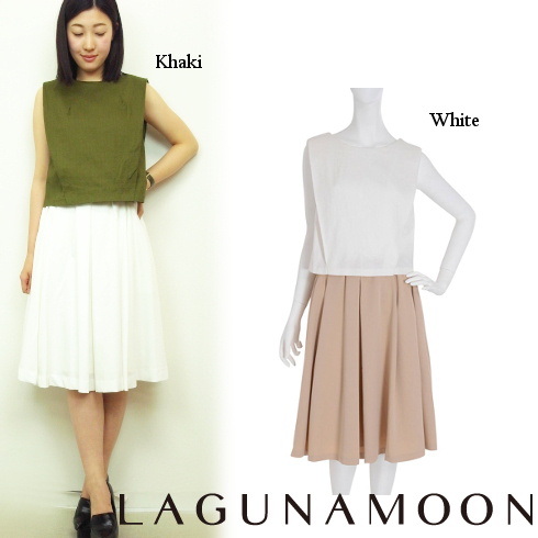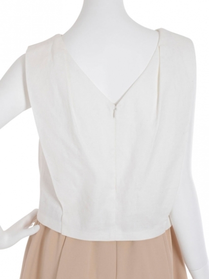 コットンリネンのショート丈トップスとフレアースカートのドッキングワンピース。
