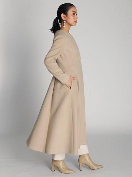 ウエストシェイプしたシルエットが美しい、フレアコート