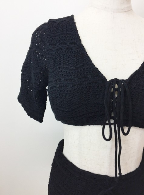 スイムウエアにかぎ針のニットを縫い合わせたセットアップ