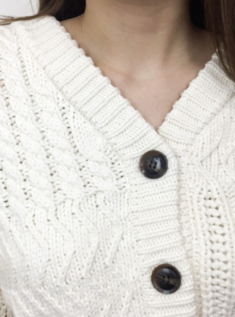 リメイク風にいくつものケーブル柄をMIXして編み上げたニットカーディガン