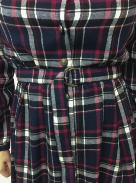先染めチェックスクエアネックワンピース