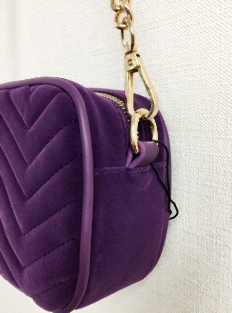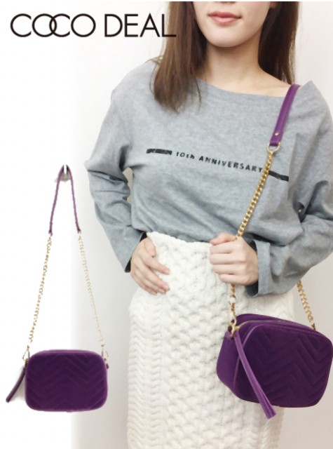パープルカラーがかわいい♪秋らしいベロア生地のショルダーバッグ