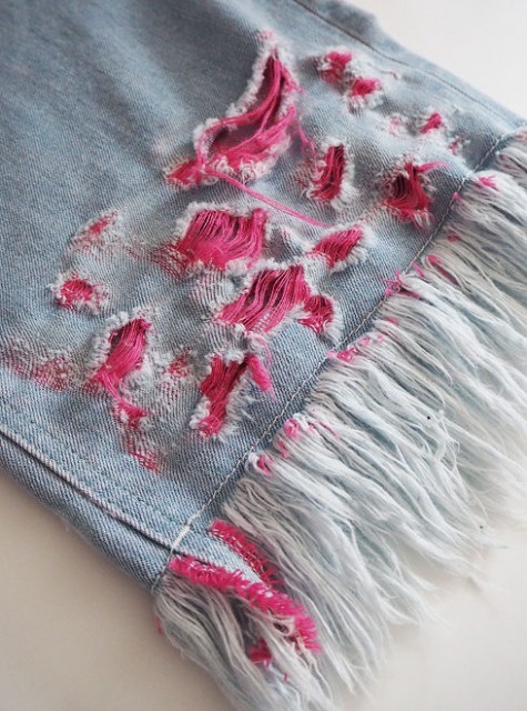 リトルサニーバイトの人気アイテム、カラーダメージとフリンジがアクセントたっぷりのダメージストレートデニム。