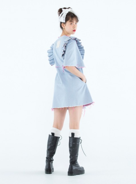 デニムでしか出せない風合いと、肩のフリルが他にはないデザイン☆