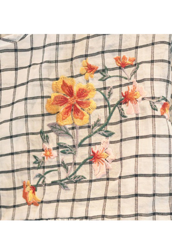 今年トレンドの花柄刺繍もチェックの生地だと新鮮で人と差がつく1枚