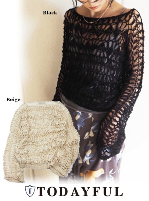 大胆な透かし柄のニットは、テープヤーンを使用していて独特の表情が特徴です。