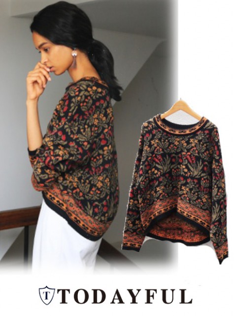 レトロチックなフラワーニットは1枚で華やかなスタイリングに♪