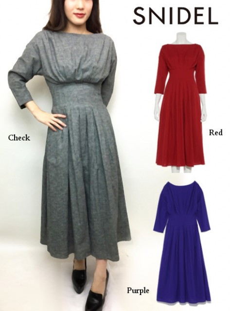バックスタイルやふんわり広がるフレアスカートがフェミニンな印象を与えます