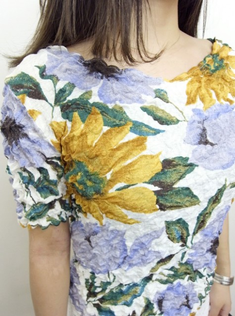 鮮やかなフラワープリントでスタイリングを印象的に導いてくれるトップス