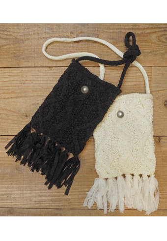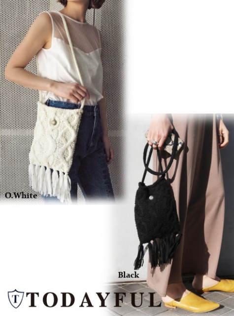 ケーブルの編地の表面感とフリンジの透け感が特徴です。