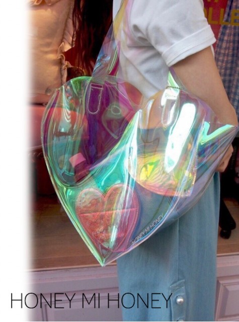 愛らしいハートがガーリッシュなムードたっぷりのバッグは、小ぶりのハートのポーチ付きでアクセサリーや小物を入れるのにも便利。