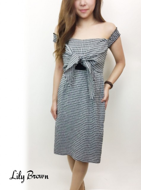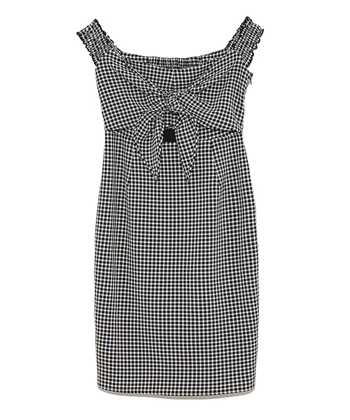 胸元の大きなリボンがポイントのオフショルワンピース。