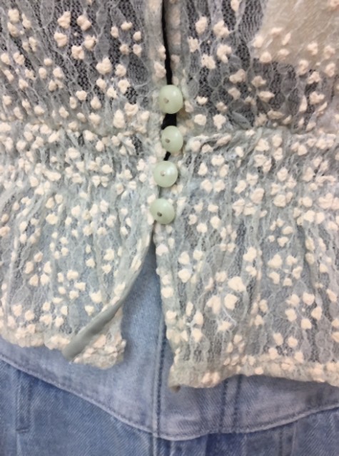 小花柄とのレース生地がレトロな雰囲気を醸し出す、コンパクトトップス。