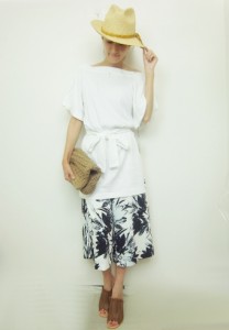 リゾート気分たっぷりのオフショルです!ガウチョ丈のパンツと合わせて、リラックスムードをさらにUPしても素敵!