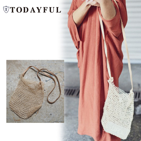 小さめのアバカ素材のポシェットがスタイリングにこなれ感を演出してくれます。