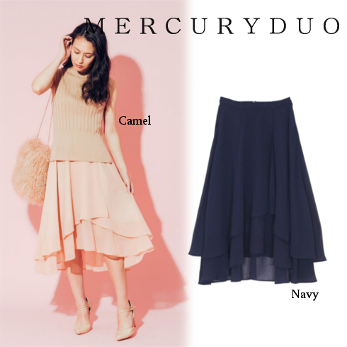アシンメトリーな裾はふわふわ揺れて華やかで女性らしさを演出。