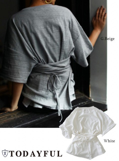 紐は後ろで結んでも前で結んでも着ていただけます。袖をロールアップしても◎。