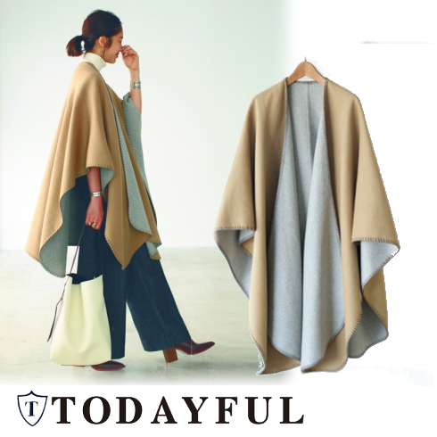 ウール混のポンチョはリバーシブルで着て頂ける1枚。