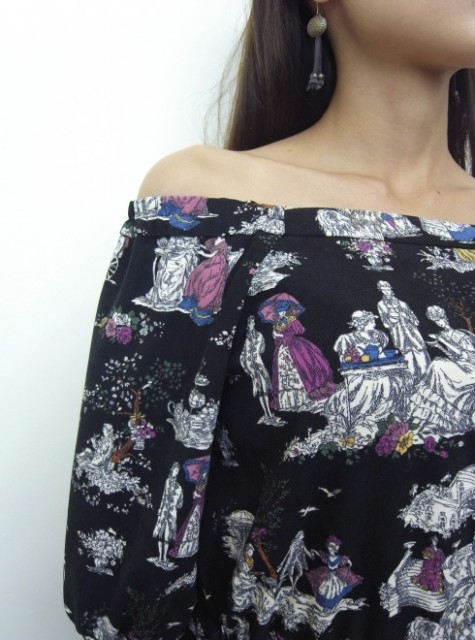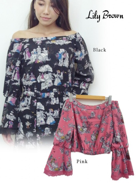 Tea party柄オフショルトップス 4,752円 50%OFF!!