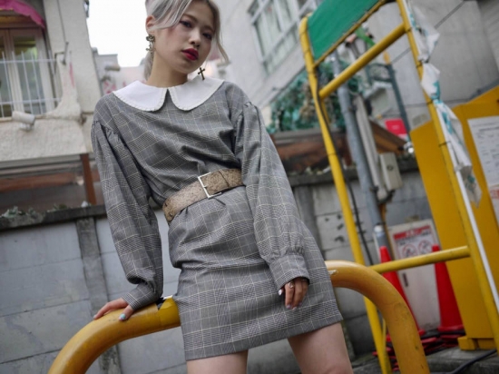 マニッシュな印象になりがちなグレンチェックを、甘さたっぷりに仕上げたAラインのミニワンピース。
