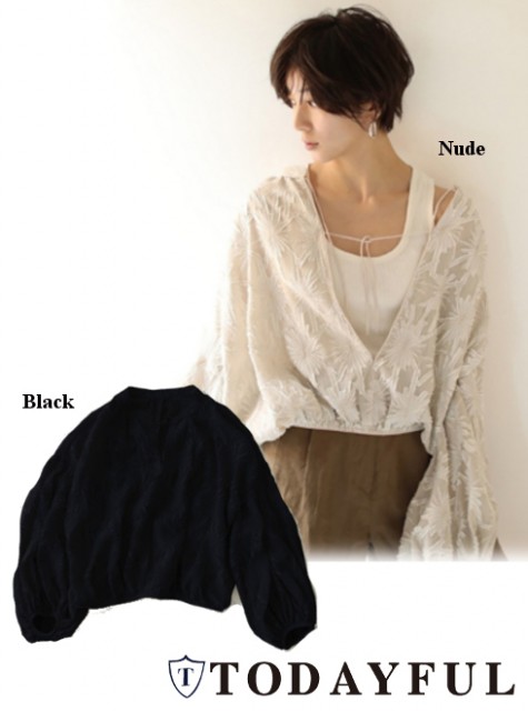 透け感ある花柄のカットジャガード生地が可愛いブラウス。