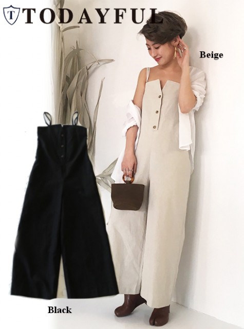 こちらのコットンリネンのコンビネゾンはフラットシューズやスニーカーを合わせて
