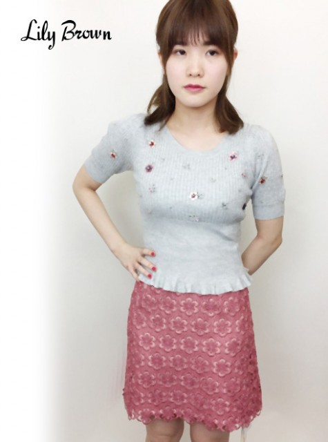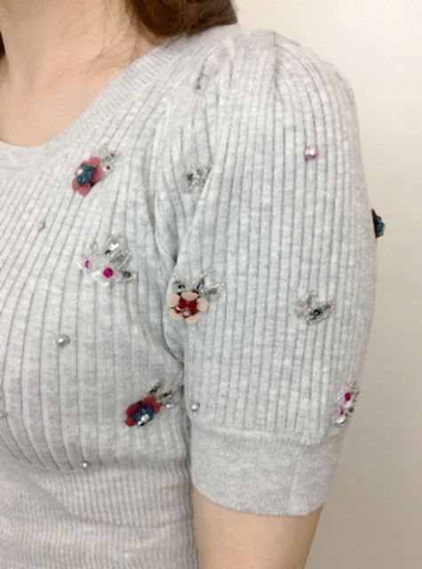 ビジューが上品なニットは自然とくびれをつくってくれる嬉しいデザイン♪