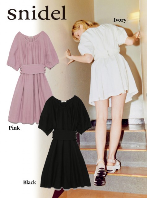 たっぷりフォルムのミニワンピースを付属のベルトでキュッと絞って着こなす、新感覚の1着。