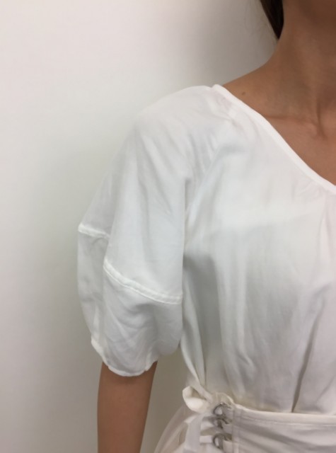 袖のラインは、ダーツを加え、ふんわりと広がるようアレンジ。