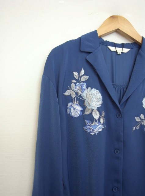 フラワーモチーフ刺繍開衿シャツ 8,424円