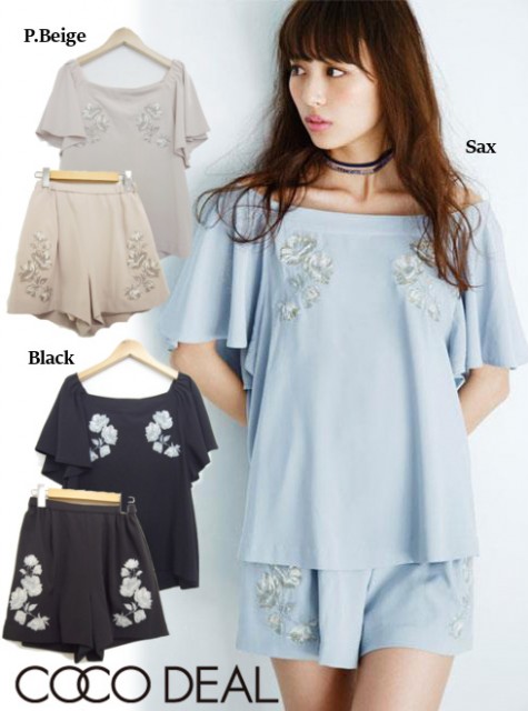 モチーフ刺繍ブラウス×ショートパンツ 12,960円