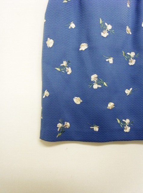 立体感あるジャカード風の素材に、ヴィンテージ感漂うブーケフラワー刺繍を施したタイトスカートです。
