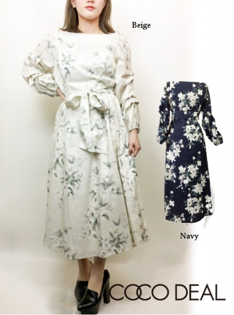 フラワープリントボリュームスリーブロングワンピース 15,120円