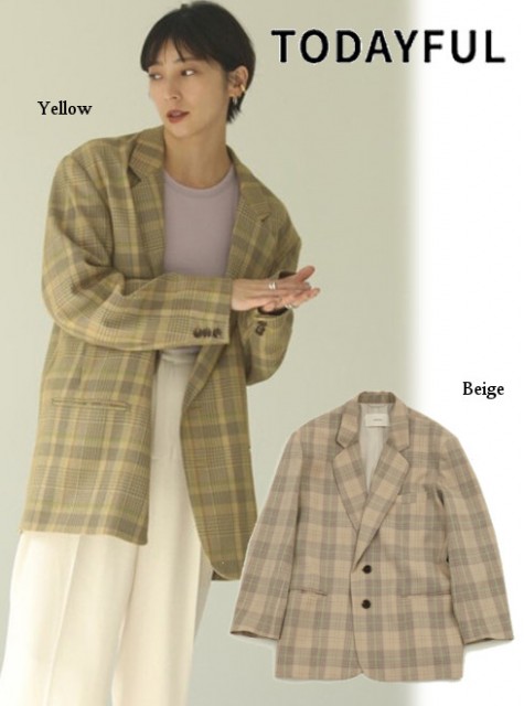 春らしいカラーのチェックジャケットはオーバーサイズでお洒落な印象に