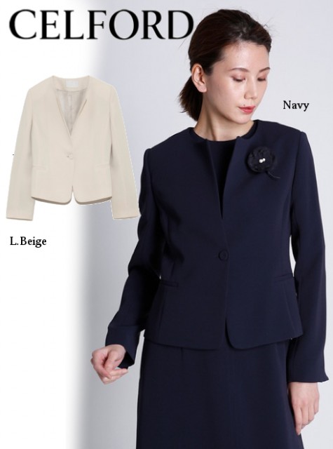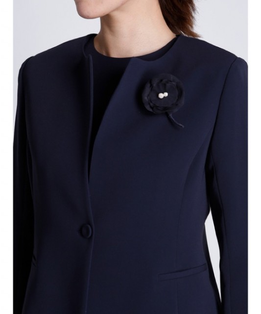 バックスタイルにも美しいシルエットを生み出すノーカラージャケット