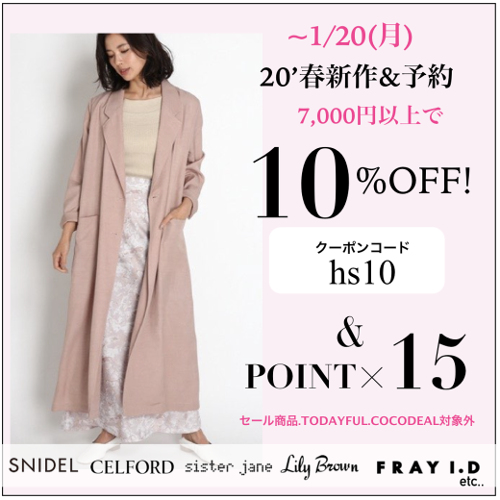 春新作&予約が対象のWキャンペーンスタート★7000円以上のお買い物で10%OFF&ポイント15倍★お得に春をGET!!