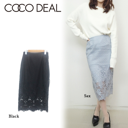 大胆なレースデザインでコーディネートに華やかさをプラス☆細見えロングスカート