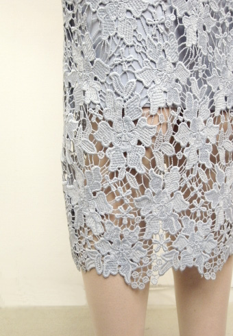 インパクトのあるパネル柄のエニブロイダリーレースが印象的なロングタイトスカートです。