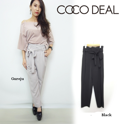 ウエストリボンがポイント♪ハイウエストでスタイルアップ効果も狙えるスラックスパンツ☆