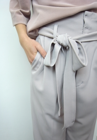 マニッシュなパンツをリボンディテールでフェミニンに仕上げています☆
