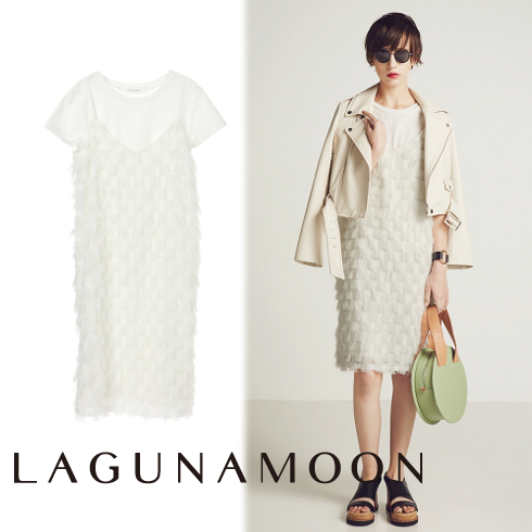 カットジャガードの表情豊かな素材が存在感を放つキャミソールワンピースとTシャツのSETアイテム 。