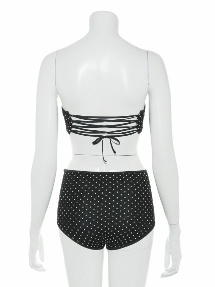 トレンドデザインながら、気になるお腹もカバーして、スタイルアップも叶えるバンドゥ+ハイウエストのビキニが登場しました。背中のレースアップが女性らしいバンドゥは、しっかりとしたカップを入れて安定感あり。洋服のインナーとしても活躍します。