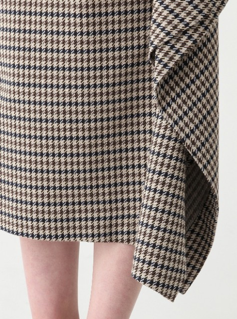 女性らしいラッフルモチフのーチェックーフのスカート。