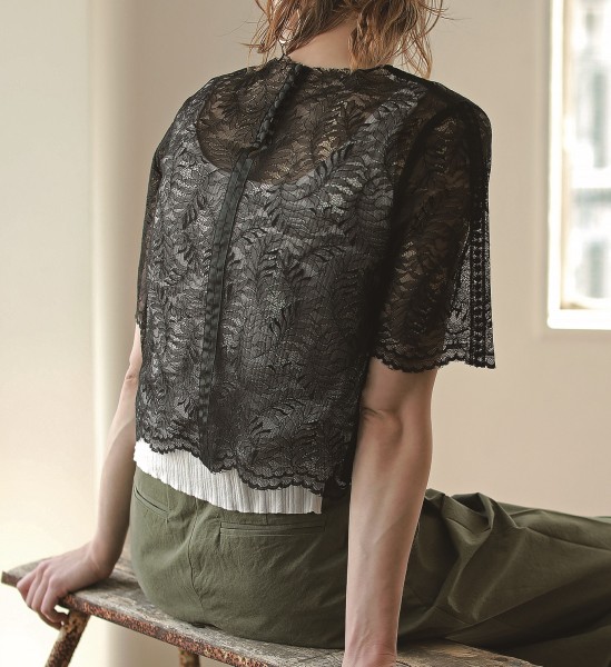 繊細なリーフ柄のレースを使ったシアーブラウスは、その透け感を楽しみたい1着☆