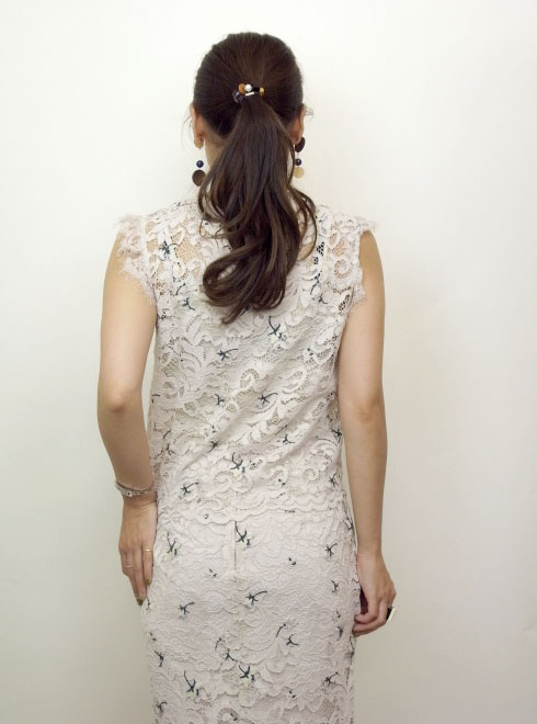 スカラップになった裾や、後ろの首元に並んだボタンなど、どの角度から見ても綺麗なのがポイント♪