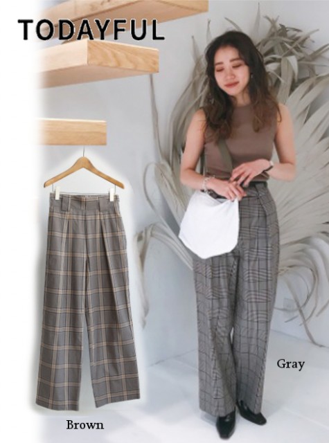 落ち着いたカラーが大人っぽいチェックパンツ。